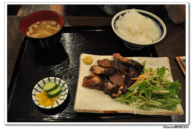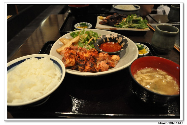 我們點了鶏もも悪魔焼定食1280円,是誰說日本的辣不會辣,這道菜讓我吃一口就眼淚直流