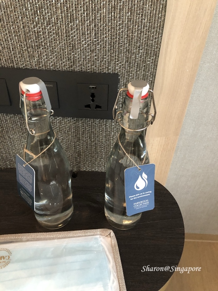 房間裡也有用玻璃瓶裝好的二瓶水,但瓶口的封條似乎有被打開過,也許不是真的被打開過,封條太不粘,很容易翹起來