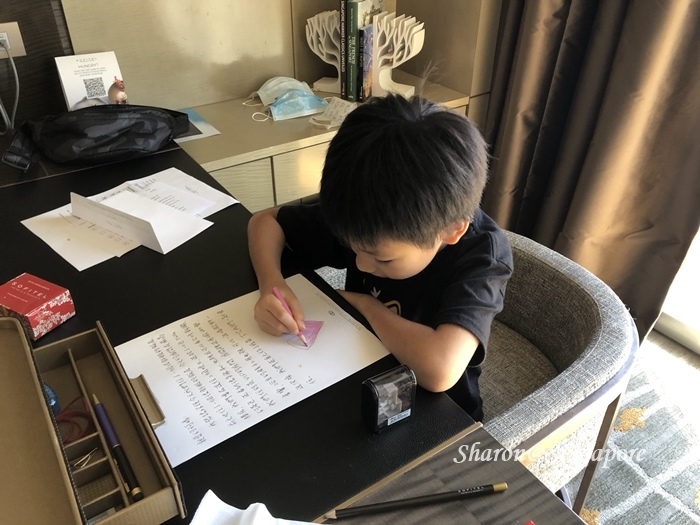 文具盒也補充的完整,我們還在這邊寫了封信給台灣阿媽